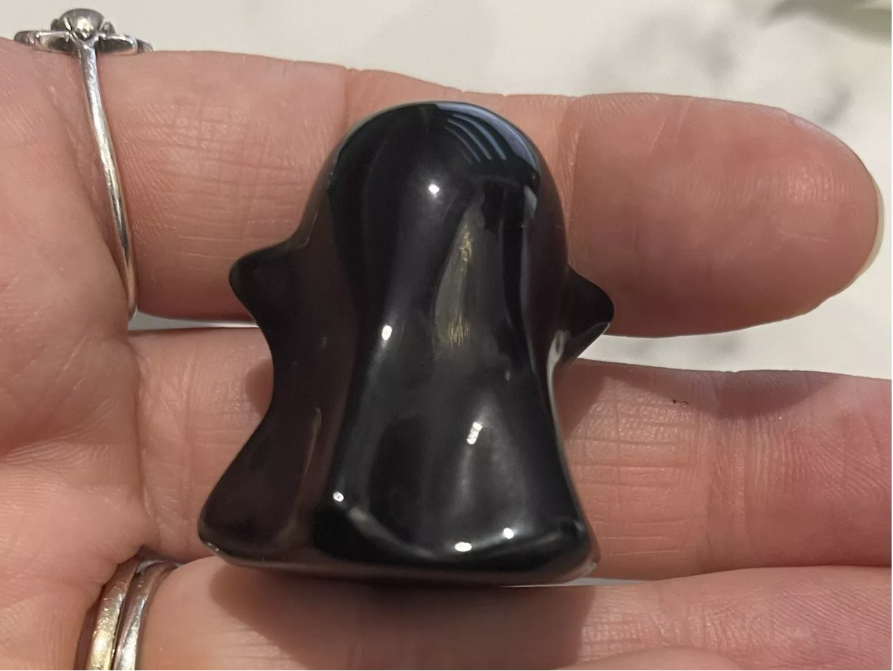 Black Obsidian Ghost – 30mm Crystal Figurine | Chakra Protection & Spooky Charm