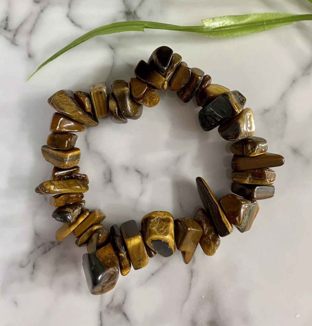 Tigers Eye Chunky Crystal Chip Bracelet Protection Elastic