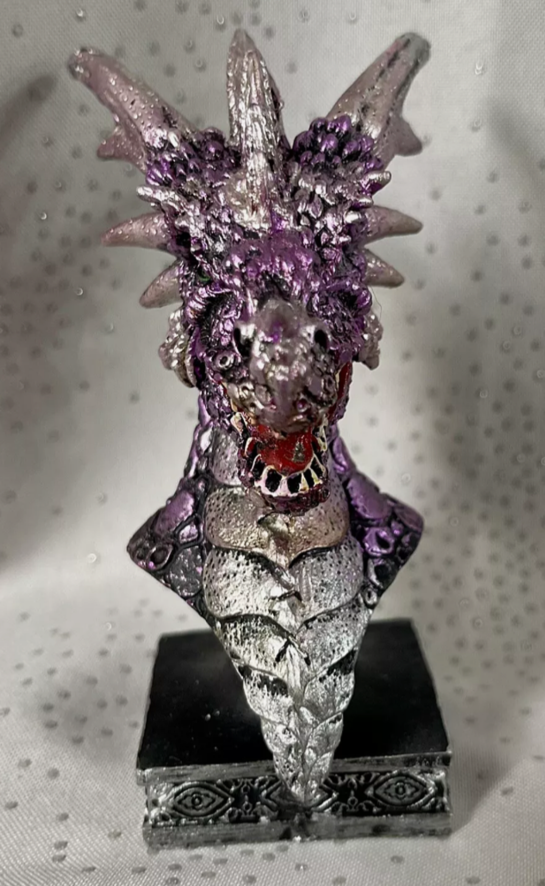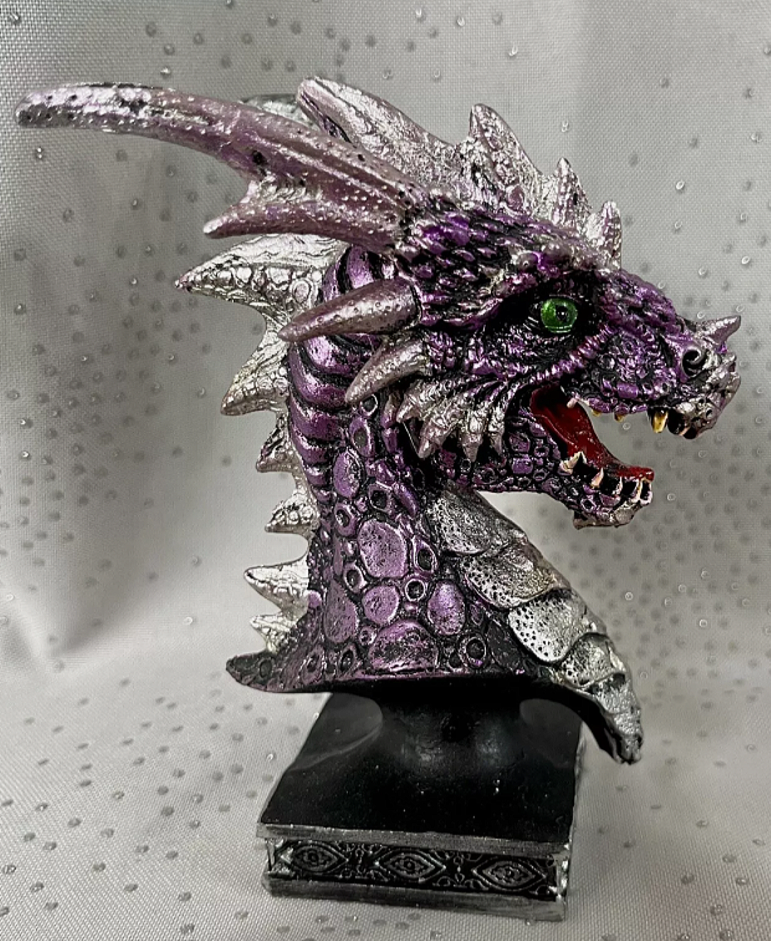 Purple Dragon Head Ornament on Stand – Gothic Mythical Figure – 8 x 6 x 11.5cm