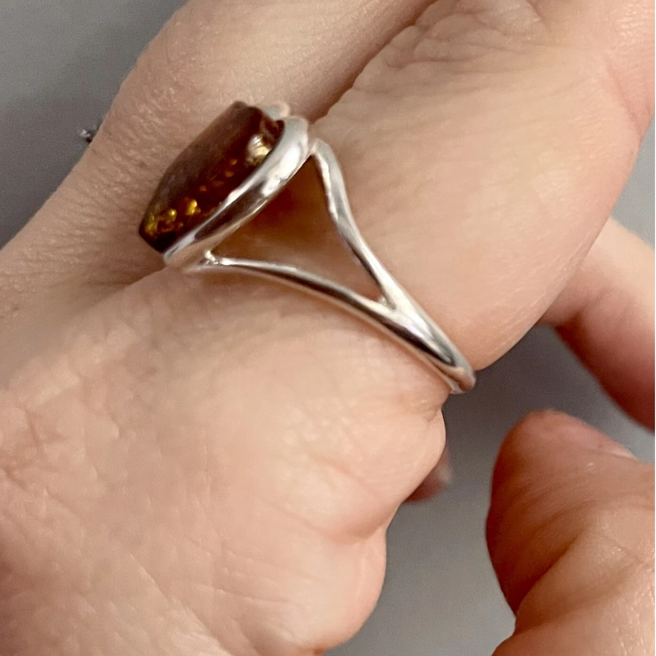 Gorgeous Baltic large amber heart ring 3.12 grams sterling silver size R