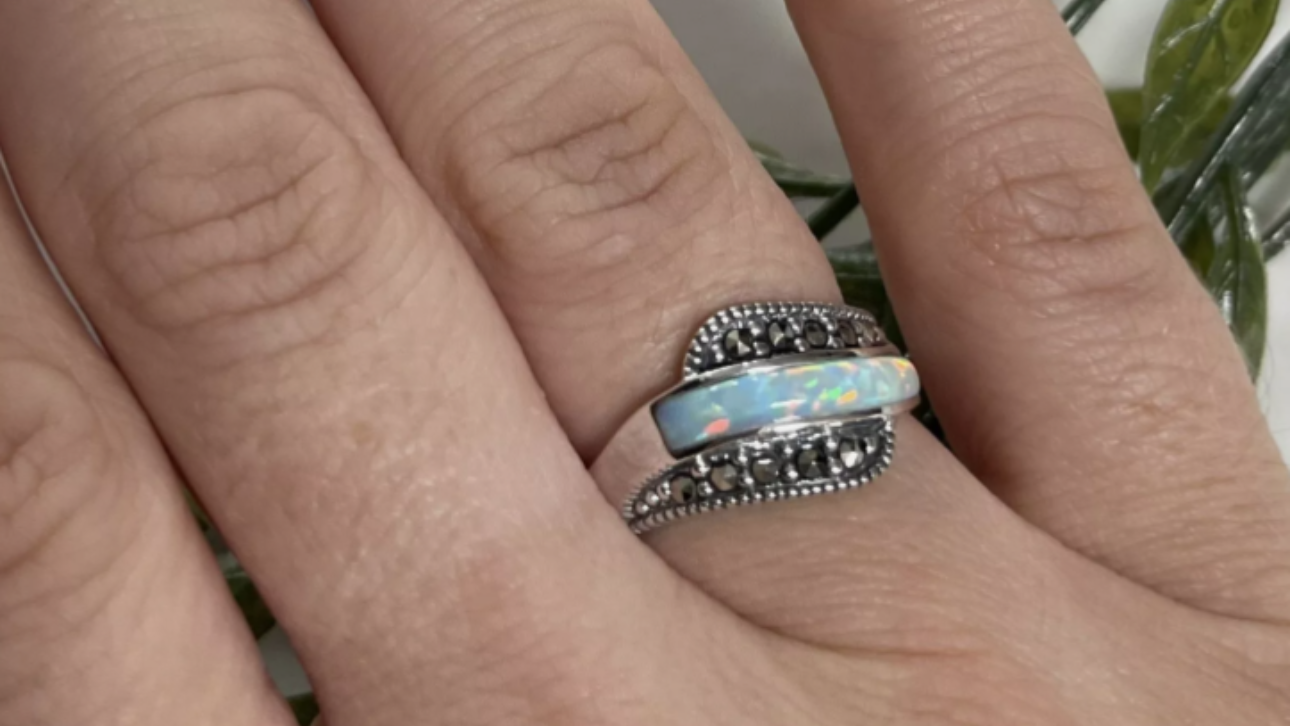 Stunning Fire Opal & Marcasite Ring – Sterling Silver – Size N – Passion & Joy Crystal